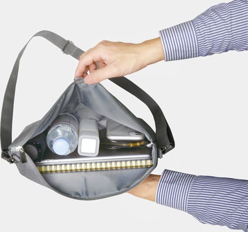 フリーアドレスに最適!オフィスでの身の回り品収納に活用。たたんで、ひろげて、用途に合わせてサイズも使い方もひろがるサコッシュ。最大13.3インチタブレット・ノートPC、A4サイズの書類が収納可能。