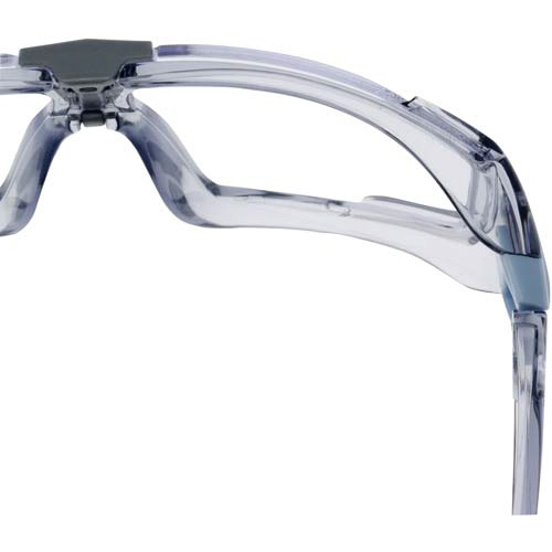 樹脂バネ蝶番により、高い防塵性能とソフトなフィット感が抜群です。テンプルラバー採用で耳当たりもソフト。両面曇り止めレンズ仕様。メタルフリーで廃棄時も便利。専用メガネポーチ付き。