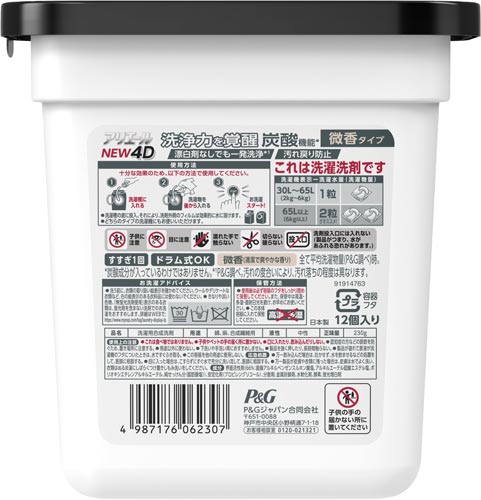 ※これは食べ物ではありません。子供やペットの手に届くところに置かない。口に入れたり、飲み込んだりしない。認知症の方などの誤飲を防ぐため、置き場所に注意する。用途以外に使わない。下洗いや手洗い用におすすめしません。製品を強く押したり、長時間触らない。製品が破れて原液が洗濯機のフタについたときは、水でふき取る。開封前の破損や液漏れに注意してお取り扱いください。切り口や角で手を切らないようにご注意ください。パッケージ裏面中央の小さな穴は外袋の膨張を防ぐための通気口です。万一飲み込んだ場合は、吐かせず、水を飲ませるなどの処置をして、医師に相談する。万一製品が衣類に残った場合は、ぬるま湯にしばらく付け置きしもみ洗いをしてください。