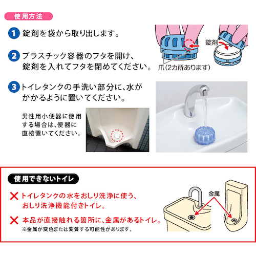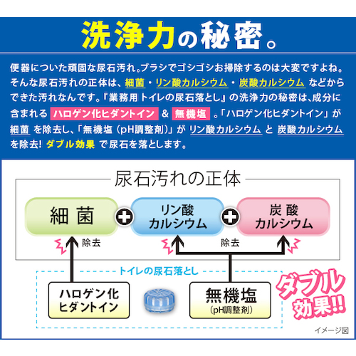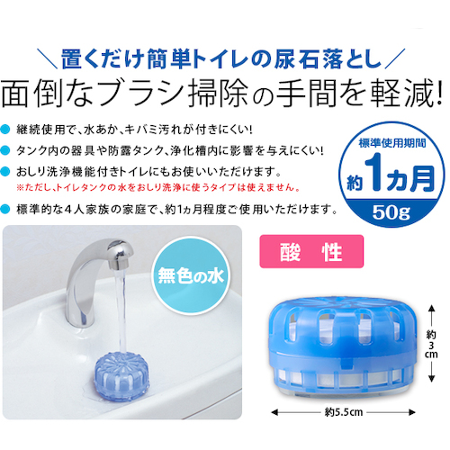 置くだけ簡単、尿石の付着を溶解しブラシ掃除の手間を軽減します。