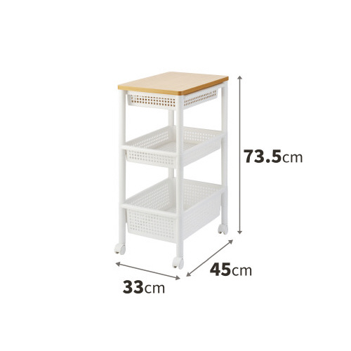 ●スペック/・耐荷重(kg/台):21・段数(段):3・色:ホワイト/ナチュラル・外形寸法(mm)間口:330・外形寸法(mm)奥行:450・外形寸法(mm)高さ:735・耐荷重(kg/段)天板:3・W33×D45×H73.5