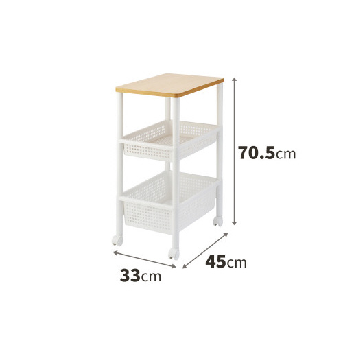 ●スペック/・耐荷重(kg/台):21・段数(段):3・色:ホワイト/ナチュラル・外形寸法(mm)間口:330・外形寸法(mm)奥行:450・外形寸法(mm)高さ:735・耐荷重(kg/段)天板:3・W33×D45×H73.5