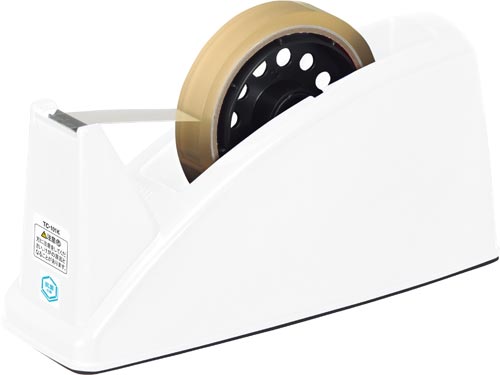 学校、公共施設、はじめ、病院、薬局、介護施設などテープを複数人で共有で使うケースで安心の抗菌材を配合した樹脂を使用したテープカッターです。しっかりした重みの安定感。太巻・小巻テープ共用
