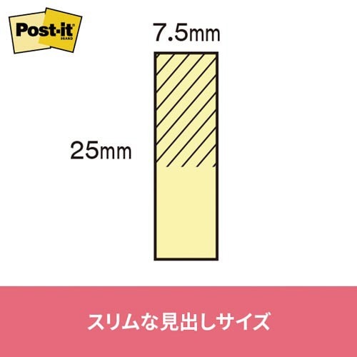 くり返し貼ったりはがしたりできるポストイット通常粘着製品です。資料整理や仕分けに便利なサイズ。資源の有効利用を考え、古紙パルプ配合率100%の再生紙を使用しています。