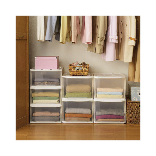 使いやすさにこだわった、シンプルな収納ケースです。引き出しはクリアなので中身がわかりやすく、引出し底面も強化構造の為、収納した時のたわみを軽減します。前倒れ防止機能・引出しストッパー付きで安心です。
