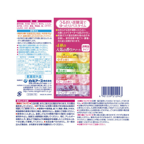 ●販売名/バスアワーPH2(ゆずの香り)、バスアワーPH2(ローズの香り)、バスアワーPH2(森の香り)、バスアワーPH2(ラベンダーの香り)