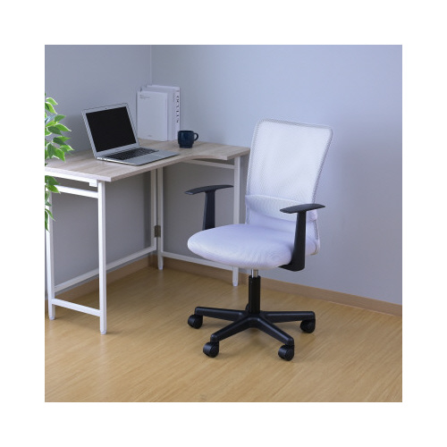 座部、背部ともに蒸れにくいメッシュ素材を採用。腰をしっかり支えるランバーサポート付き。お部屋を明るく彩るホワイト。シンプルなデザイン。