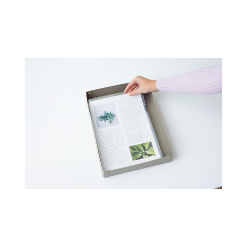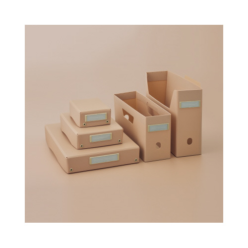 インテリアに馴染む、落ち着いたカラーリングの収納アイテムシリーズRoomy。別サイズがピッタリ入るサイズ設計で、仕切りのように使える。A4ワイドサイズなのでA4ファイル、角2封筒が収納可能。