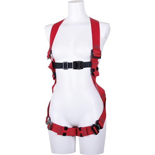 胸ベルトの位置が調整できる新規格適合の女性用ハーネス。