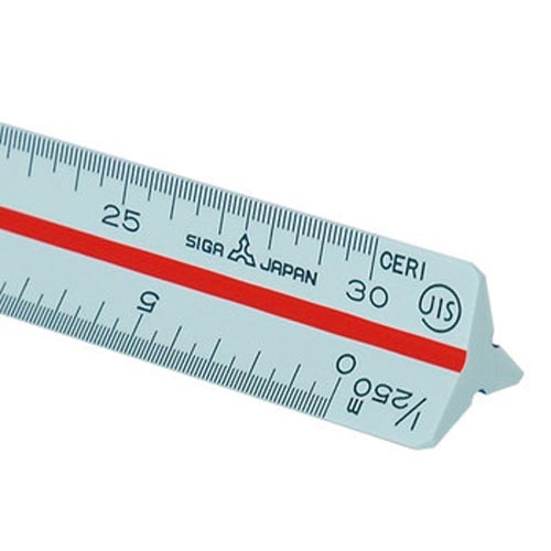 図面作成、寸法の読み取りに使用する三角スケールです。地積測量図や各階平面図などに便利な縮尺です。