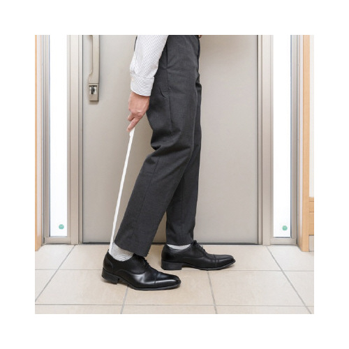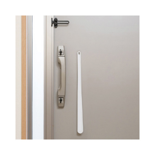 玄関にピタッと収納できる靴ベラです。靴の脱ぎ履きに。かがまず、立ったままでも使いやすい全長約60cmです。