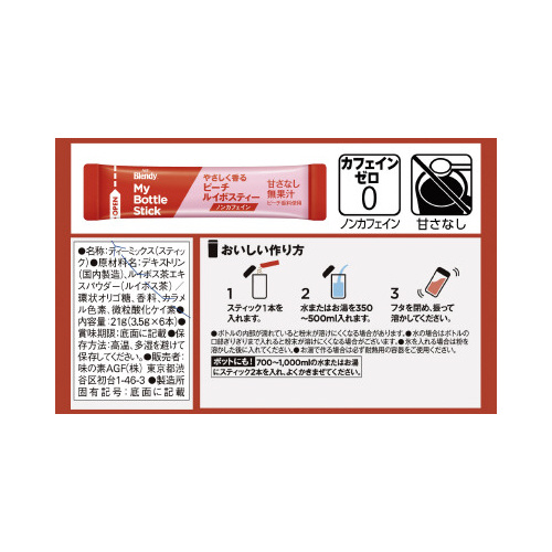 マイボトルに最適なレシピでホットもアイスも楽しめるやさしいピーチ風味のノンカフェインルイボスティーです。