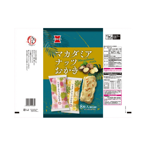 やさしい甘さのマカダミアナッツとお米の香ばしさがマッチした、外はサクッと中はふんわりとしたやさしい口どけのおかきです。