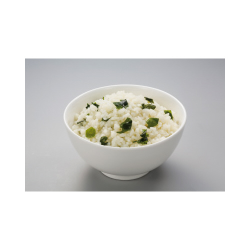 7年間の長期保存が可能です。優しい味が人気のわかめご飯です。調理時に注水量を変えることによって、ごはんと雑炊の2通りの食べ方が選べ、幼児から高齢者まで召し上がりいただけます。