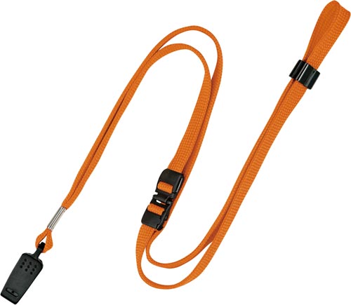 ケースの取り付け・取り外しが簡単にできる名札用ストラップ。先端クリップを胸ポケットに差し込み固定させることができます。