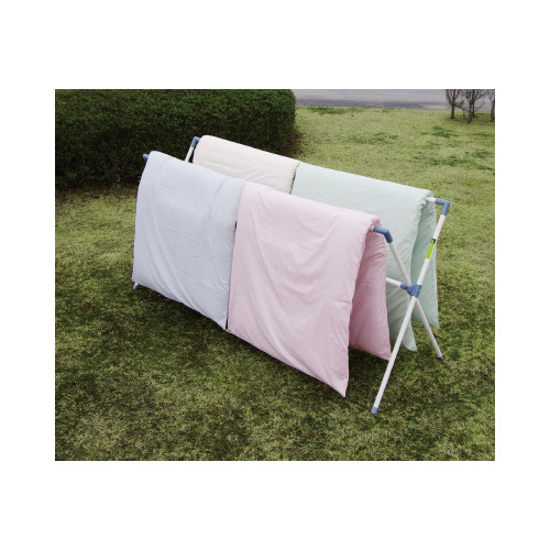 ふとんの枚数に合わせて伸縮できるふとん干し。使わないときは折りたたんで収納できます。ネジ・釘を使わないで女性でも簡単に組み立てることができます。
