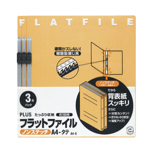 とじ具を外すだけ、簡単・分別廃棄可能なノンステッチのフラットファイル。