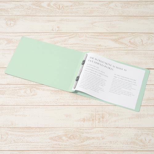 とじ具を外すだけ、簡単・分別廃棄可能なノンステッチの(とじしろ溶着式)フラットファイル。