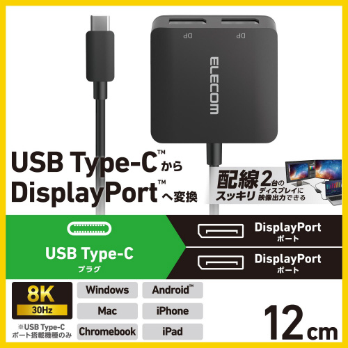 パソコンやスマートフォンなどの映像をディスプレイなどに出力できる、Type-CポートをDisplayPortポートに変換するアダプターです。