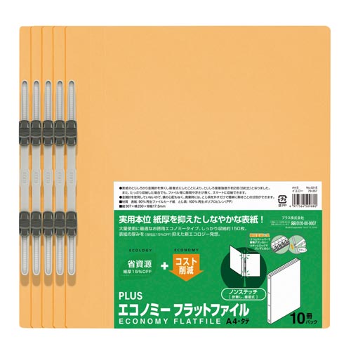 薄型のカード紙を使用し、省資源とコスト削減を実現した凡用フラットファイル。金属針不使用で、廃棄時の分別も簡単。