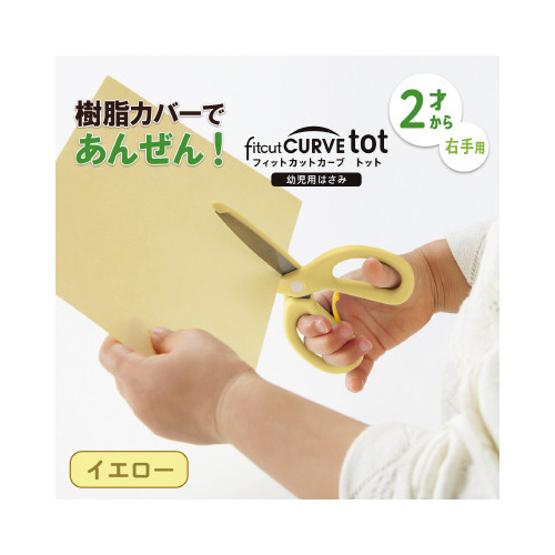 フィットカットカーブから、はさみデビューに最適な2歳から使える幼児用はさみ登場!樹脂ガードで安全に、金属刃とベルヌーイカーブ刃で「ちゃんと切れる」幼児用のハサミです。左右対称ハンドル、アシストバネ付。