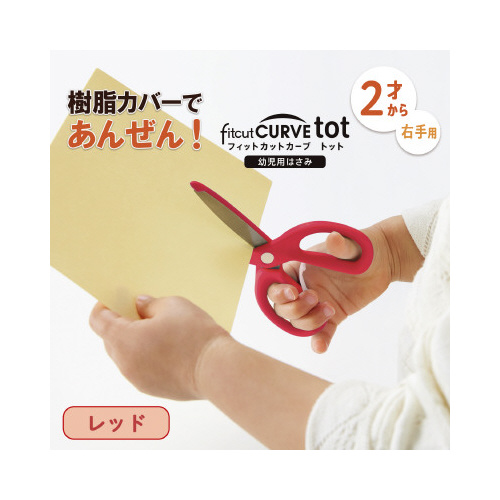 フィットカットカーブから、はさみデビューに最適な2歳から使える幼児用はさみ登場!樹脂ガードで安全に、金属刃とベルヌーイカーブ刃で「ちゃんと切れる」幼児用のハサミです。左右対称ハンドル、アシストバネ付。