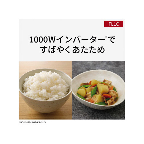 ●消費電力/1000W※高周波出力1000Wは短時間高出力機能(最大1分30秒)であり、調理中自動的に600Wに切り換わります。これは自動メニュー(「1あたため」ボタン、「2飲み物(1杯/2杯)」ボタン)で働きます。