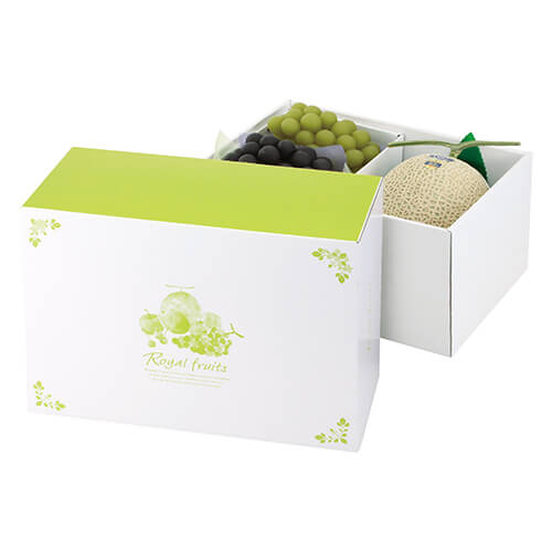 サイズが身325×225×160mmのフルーツ用ギフトパッケージ。メロン5玉サイズ2個にちょうど良い大きさとなっています。さまざまな果物類のパッケージ、ギフト包装にいかがでしょうか。