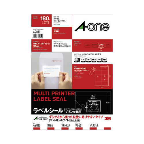 ずらせるから狙った位置に貼りやすい加工を施しています。のり面に独自特殊加工をすることで、封筒上で滑らせて位置合わせがしやすくなっています。いろいろなプリンタで印刷できるラベルシールです。