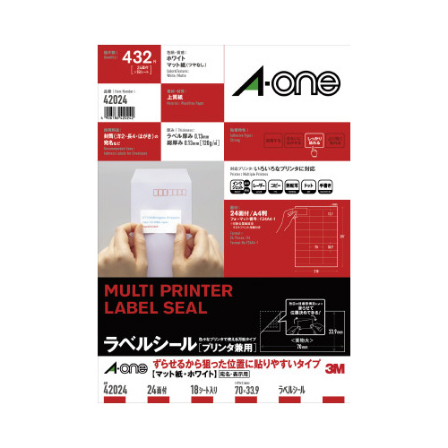 ずらせるから狙った位置に貼りやすい加工を施しています。のり面に独自特殊加工をすることで、封筒上で滑らせて位置合わせがしやすくなっています。いろいろなプリンタで印刷できるラベルシールです。