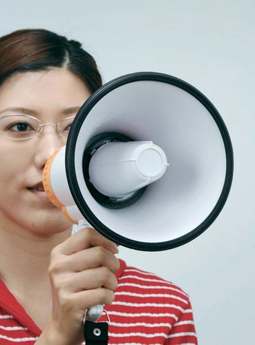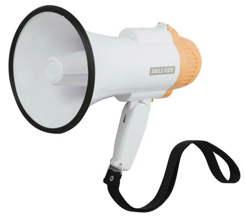 緊急サイレン付10Wハンドメガホン。単2形乾電池4本使用で軽量です。緊急時サイレン音量100dB(8m)。国産アルカリ乾電池使用で連続約5時間使用可能(ボリューム最大位置)。折りたたみ式ハンドルです。