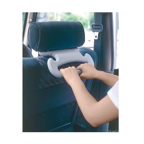 車のヘッドレストのポールに取り付けることで、乗降時や乗車中の持手になります。フックとして買い物袋等も掛けられます。