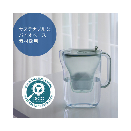 ●本体にバイオベース素材を採用したハイエンドモデル。全容量2.4L、ろ過水容量1.26L