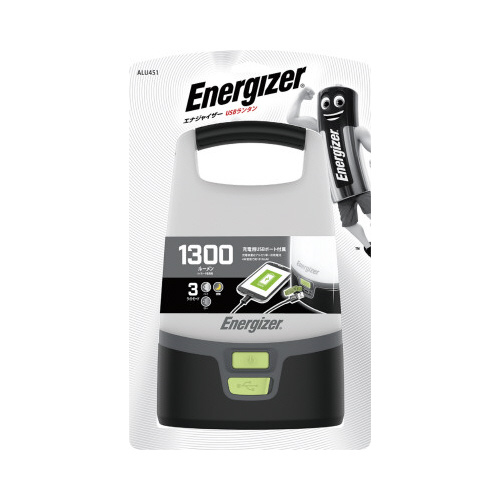 明るさ1300ルーメンで周囲をしっかり照らします!キャンプや防災用に。暗闇でもボタンの位置が分かる蓄光ボタン採用。モバイル端末への充電用USBポートから、スマホの充電が可能。