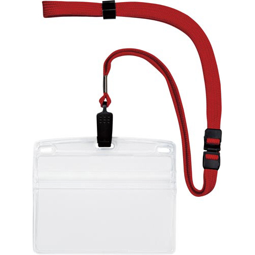 ケースの取り付け・取り外しが簡単にできる名札用ストラップ。付属のちょっと大きめな名札ケースは多くの企業様にご利用いただいております。
