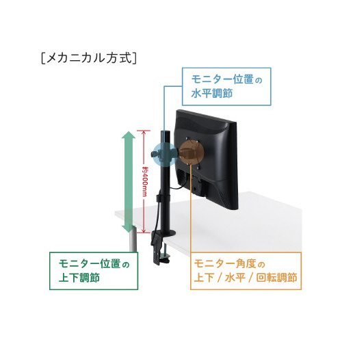 PCモニタ-を自由な高さに調整できるモニタ-ア-ムです。台座ない分デスク周りのスペ-スを有効活用。目線があがり姿勢改善の効果が期待できます。