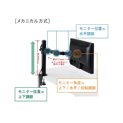 PCモニタ-を自由な高さに調整できるモニタ-ア-ムです。台座ない分デスク周りのスペ-スを有効活用。目線があがり姿勢改善の効果が期待できます。