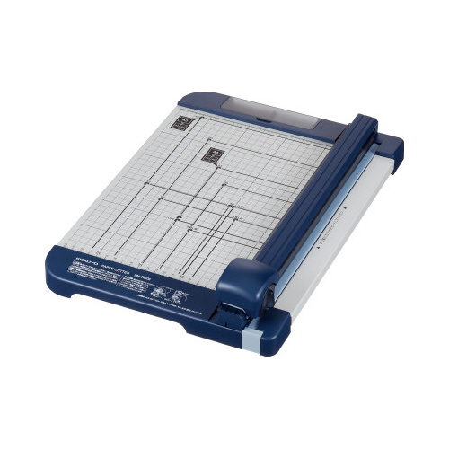 チタン加工刃搭載で、切れ味持続2倍・切れ味110%・刃先の硬度2.5倍(全て当社比)。スライダーを前後にスライドするだけで簡単に裁断ができるロータリー式(裁断能力:PPC用紙10枚)。