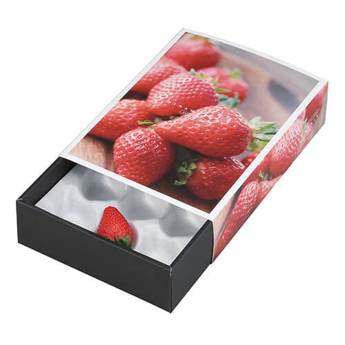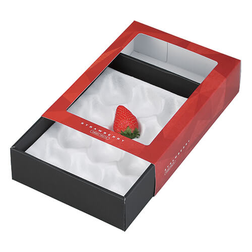 サイズが170×240×60mmのフルーツ用ギフトパッケージ。フルーツの包装にちょうど良い大きさとなっています。イチゴのパッケージ、ギフト包装にいかがでしょうか。