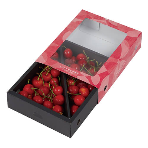 サイズが200×150×50mmのフルーツ用ギフトパッケージ。フルーツの包装にちょうど良い大きさとなっています。サクランボの展示や発送にいかがでしょうか。