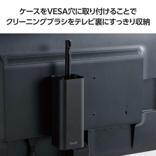 テレビ裏に隠して収納可能!VESA穴に取り付けることができるクリーニングブラシケースです。