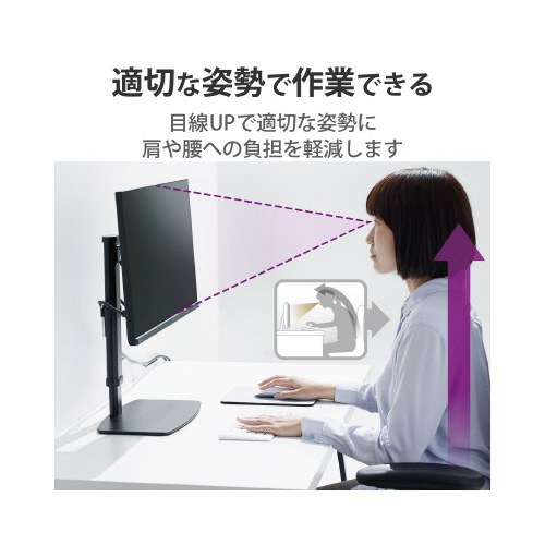 最適な目線に合わせて高さを360-540mmの間で10段階調整できる液晶ディスプレイスタンドです。