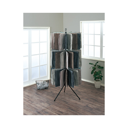 フェイスタオルが48枚干せるおしゃれなマットブラック仕様のパラソル物干し。上段は取り外して竿に掛けて使用できます。差し込むだけの簡単組立。省スペースで場所を取らずに収納できます。