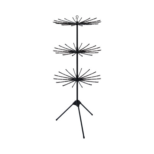 フェイスタオルが48枚干せるおしゃれなマットブラック仕様のパラソル物干し。上段は取り外して竿に掛けて使用できます。差し込むだけの簡単組立。省スペースで場所を取らずに収納できます。