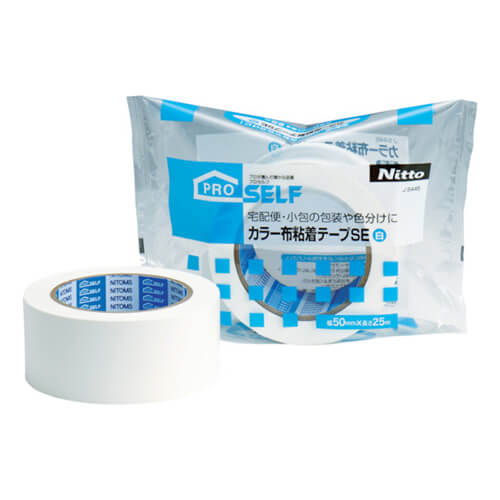 ●メーカー品名:ニトムズ カラー布粘着テープSE白●メーカー品番:J5445●色:ホワイト●幅(mm):50●長さ(m):25●厚さ(mm):0.19●粘着力:13.7N/10mm●引張強度:39.2N/10mm●基材:PE、PT●粘着剤:ゴム系