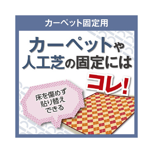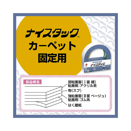 ニチバンのナイスタックシリーズ。カーペット固定に最適な両面テープ。カーペットだけでなく、人工芝や玄関・台所などの小型マットの固定に。