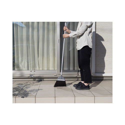 玄関やベランダに最適。しなやかな掃き心地で細かい砂ホコリなどをしっかり掃くことができます。柄が長く腰や背中に負担が掛からない姿勢でお掃除できます。穂は水に強く水回りを掃いても穂が反りにくい特長。