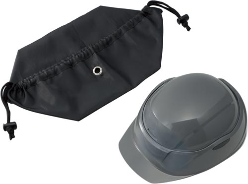 オフィスでの収納と使用に適した回転式ヘルメット。専用収納袋付きで、マグネットフックなどを利用してデスクサイドなどで保管ができます。