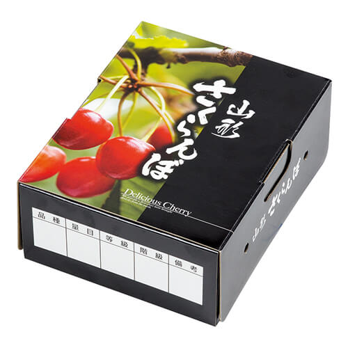 サイズが175×135×80mmのフルーツ用ギフトパッケージ。山形産さくらんぼ500gパックにちょうど良い大きさとなっています。さくらんぼのパッケージ、ギフト包装にいかがでしょうか。