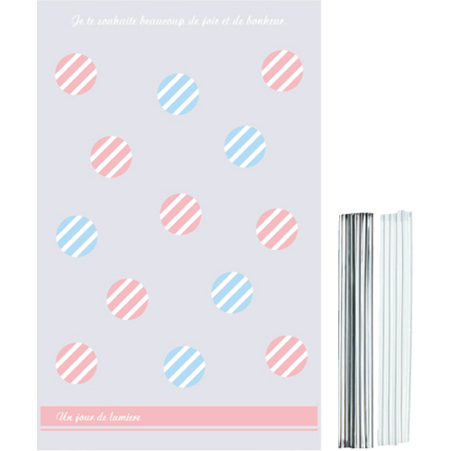 ワイヤータイ付きです。食品対応していますので、直接食品を入れることができます。シンプルで合わせやすいレースのデザインになります。